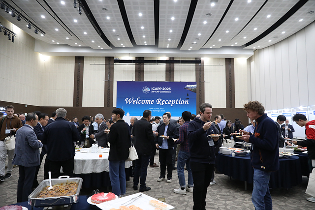 ICAPP 2023 opened with a welcome reception and networking event on Sunday 23rd for early attendees. The reception was opened with a welcome address from Won-Pil Baek, General Chair and President of the Korean Nuclear Society (KNS). An open buffet was provided, accompanied with a string quartet performance. The reception was a chance to meet up with old friends and break the ice with new acquaintances.
